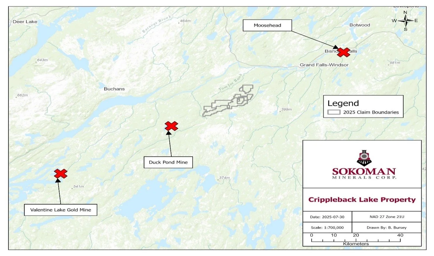 St. John’s, NL, October 20, 2025 – Sokoman Minerals Corp. (TSXV: SIC) (OTCQB: SICNF) (“Sokoman” or the “Company”) further to its October 8, 2025 news release the Company is pleased to provide further details regarding the expansion of the Company's holdings along the Valentine Lake Fault.