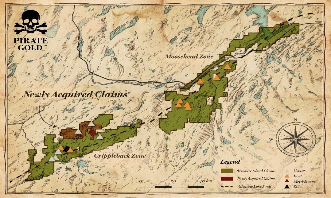 As noted on October 8, 2025, the Company transformed its Moosehead and Crippleback claim groups to form the Treasure Island Project. The Treasure Island Project contains the largest mineral license package and longest strike length along the Valentine Lake Fault and positions the Company as the dominant explorer along strike of the Valentine Gold Mine.